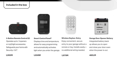 - (1) Wireless Keypad (L979M) - Enjoy convenient, secure entry to your garage without a remote or key. Installs easily—no additional wiring needed.