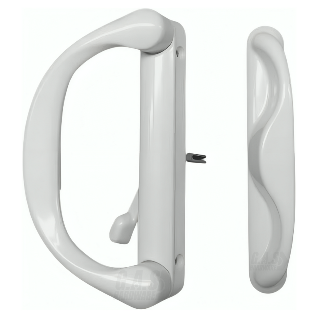 Description: Involute Interlock Handle Set for Sliding Patio Doors Set-up:Measures Screw Holes: 4-15/16 inch, Center to Center - Mounting Plate Width: 1 inch - Mounting Plate Length: 6-5/8 inch Category:Sliding Patio Door Handle Set Material:Brass